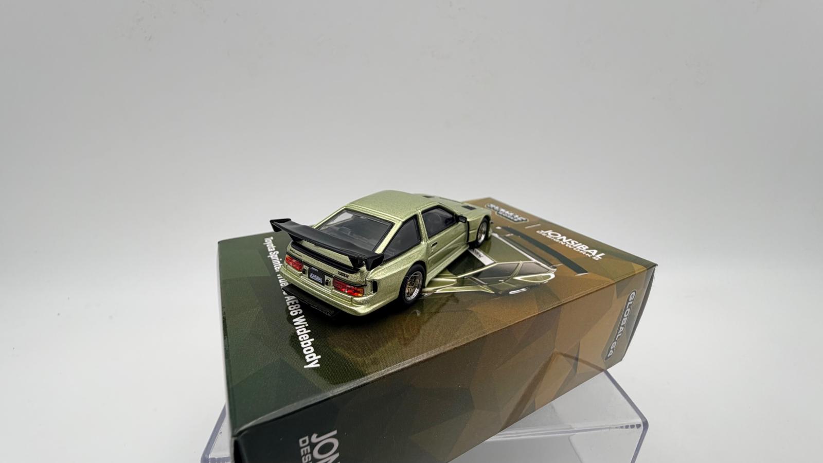 TARMAC WORKS 1:64 TOYOTA SPINTER TRUENO AE86 WIDEBODY GREEN BY JON SIBAL